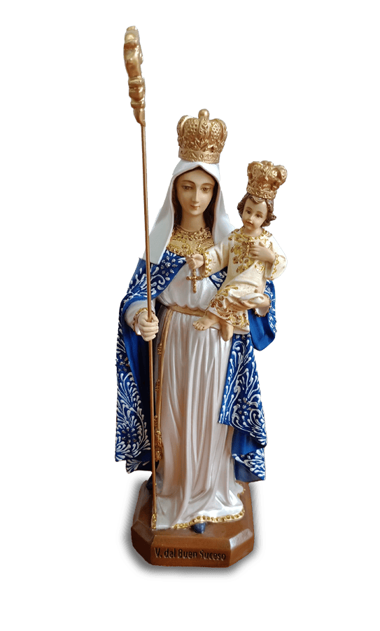 Hermosa estatuilla de Nuestra Señora del Buen Suceso de la Purificación, elaborada en resina reforzada con fibra de vidrio y pintada a mano en acabado óleo. Una pieza fina, resistente y detallada, inspirada en la imagen original venerada en el Monasterio de la Inmaculada Concepción de Quito.